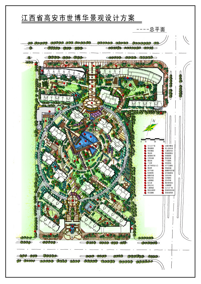 针对高安住宅地产景观设计高安世博华城项目基地位于江西省高安市,东临碧落北路,北临规划莲花北路,南临瑞阳大道,规划用地总面积85744.68平方米。提出景观设计构思: